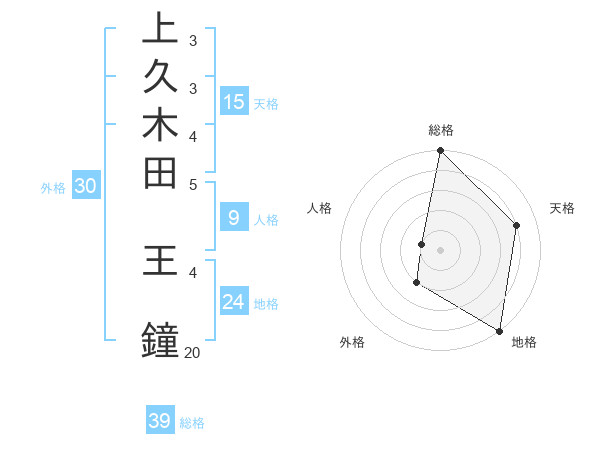 上久木田 王鐘さんの総格は39画の5点