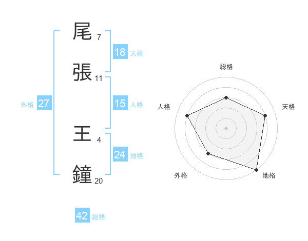 尾張 王鐘さんを姓名の画数から五運を鑑定