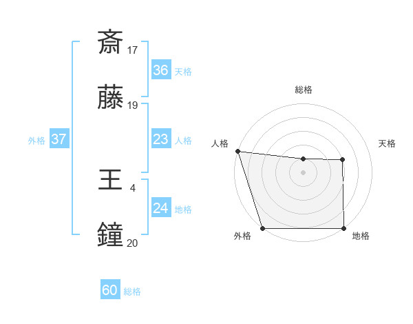 斎藤 王鐘さんを姓名の画数から五運を鑑定