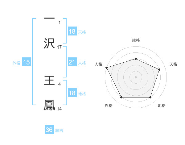 一沢 王鳳さんを姓名の画数から五運を鑑定