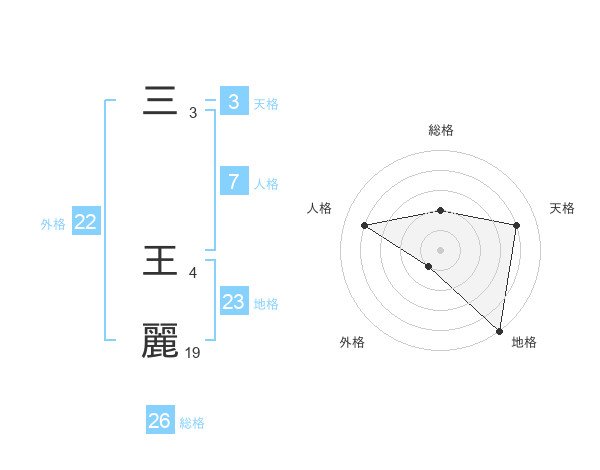 三 王麗さんの総格は26画の2点!
