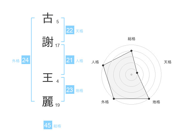 古謝 王麗さんの総格は45画の4点!