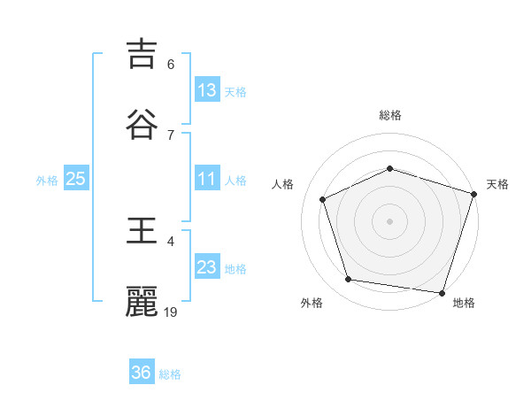 吉谷 王麗さんの天格は13画の5点!