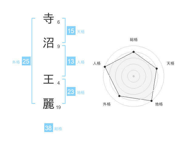 寺沼 王麗さんの総格は38画の4点!