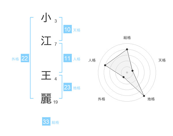 小江 王麗さんの総格は33画の4点!
