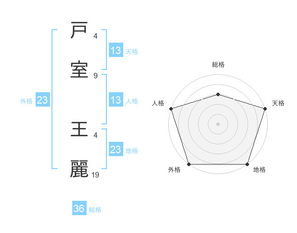 戸室 王麗さんの外格は23画の5点!