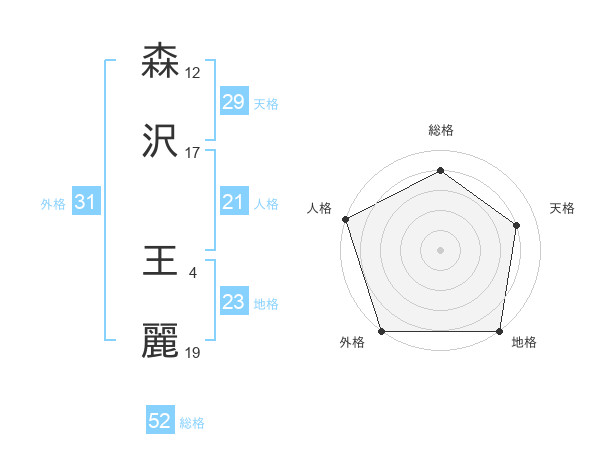森沢 王麗さんを姓名の画数から五運を鑑定