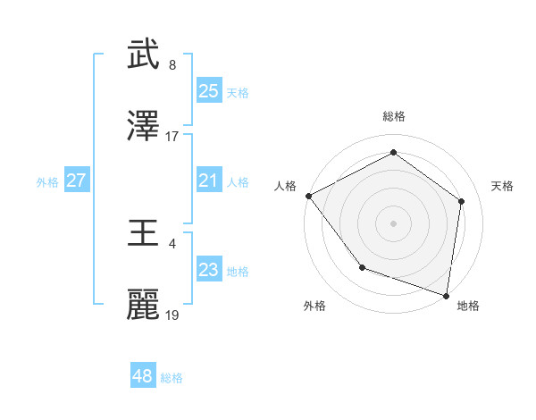 武澤 王麗さんを姓名の画数から五運を鑑定