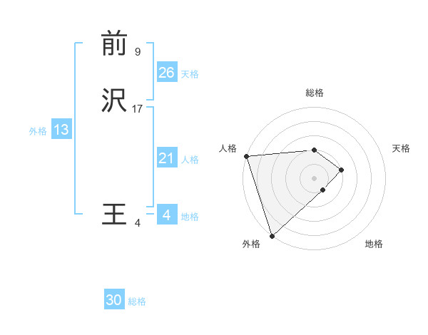 家系が持つ宿命的な運勢を表します。祖先から受け継いだ苗字ですので自分の力が及びません。家柄を象徴します。