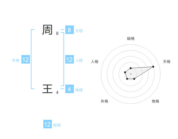 周 王さんの総格は12画の1点!