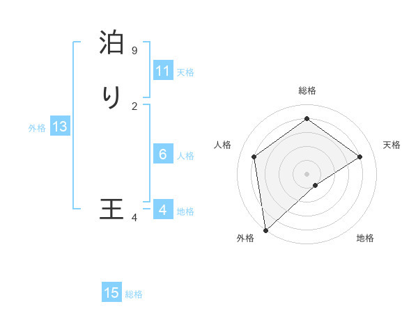 泊り 王さんの総格は15画の4点!