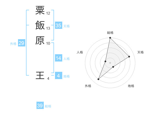 粟飯原 王さんの天格は35画の4点!