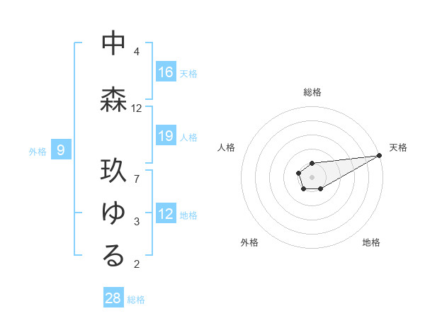 中森 玖ゆるさんを姓名の画数から五運を鑑定