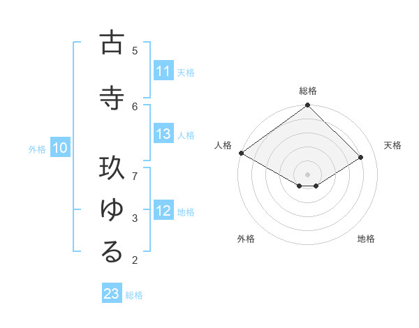 古寺 玖ゆるさんを姓名の画数から五運を鑑定