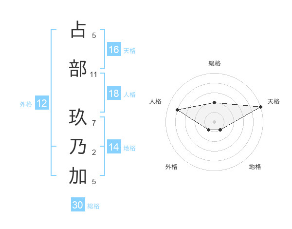 占部 玖乃加さんを姓名の画数から五運を鑑定