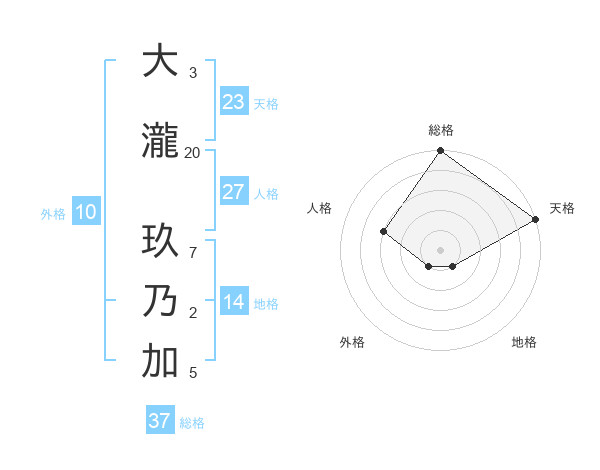 大瀧 玖乃加さんを姓名の画数から五運を鑑定