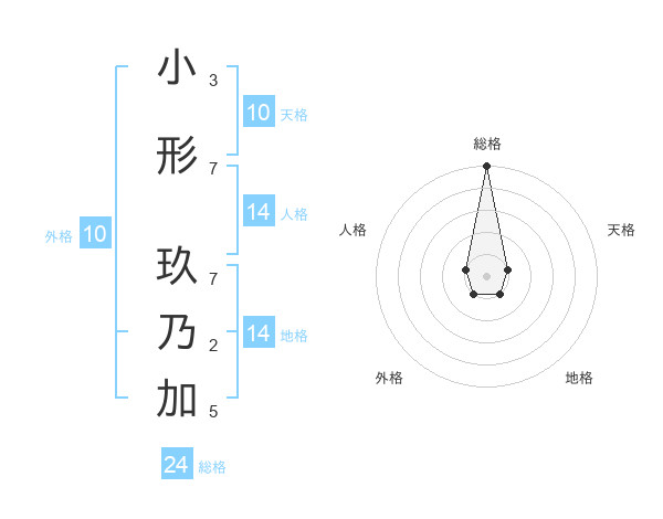 小形 玖乃加さんを姓名の画数から五運を鑑定