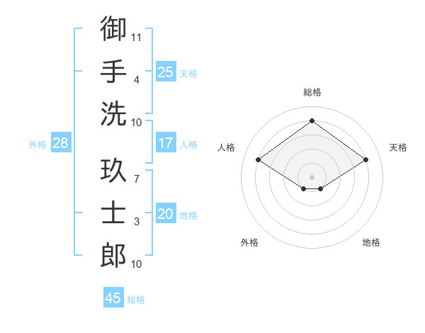 御手洗 玖士郎さんの総格は45画の4点!