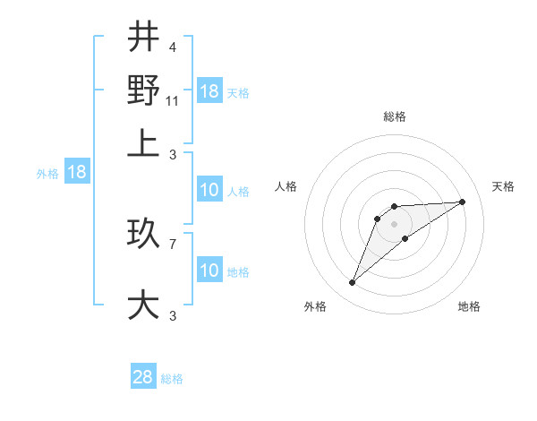 井野上 玖大さんを姓名の画数から五運を鑑定