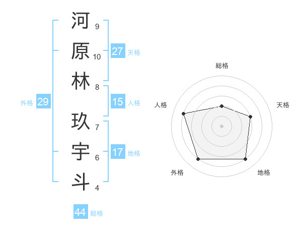 河原林 玖宇斗さんを姓名の画数から五運を鑑定