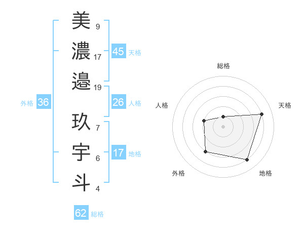 美濃邉 玖宇斗さんの地格は17画の4点!