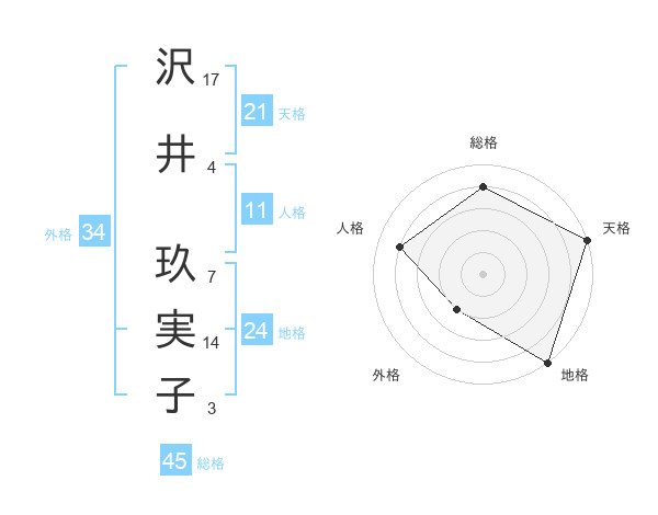 沢井 玖実子さんの天格は21画の5点!