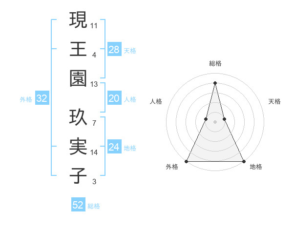 現王園 玖実子さんを姓名の画数から五運を鑑定