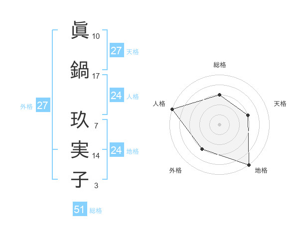 眞鍋 玖実子さんの名前の鑑定結果は!