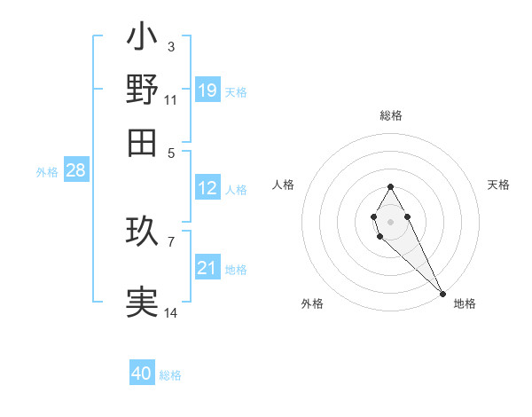 小野田 玖実さんを姓名の画数から五運を鑑定