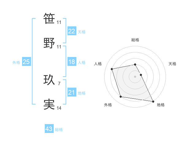 笹野 玖実さんを姓名の画数から五運を鑑定