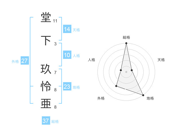 堂下 玖怜亜さんの総格は37画の5点!