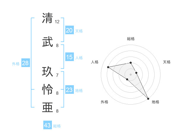 清武 玖怜亜さんを姓名の画数から五運を鑑定