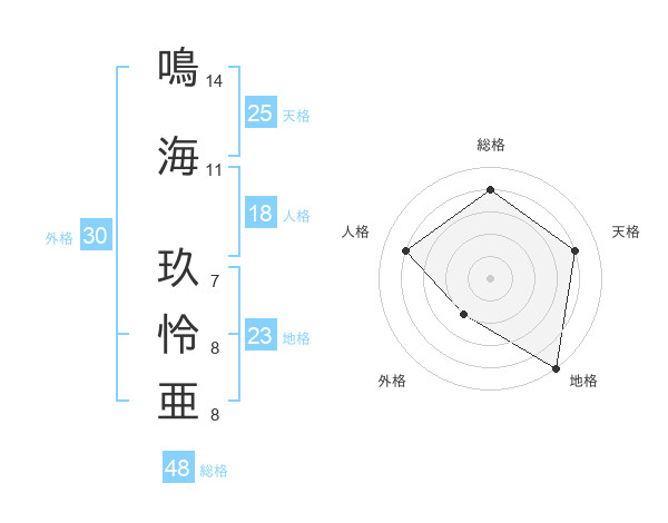 鳴海 玖怜亜さんを姓名の画数から五運を鑑定