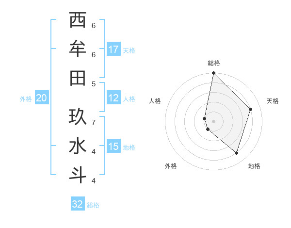 西牟田 玖水斗さんを姓名の画数から五運を鑑定