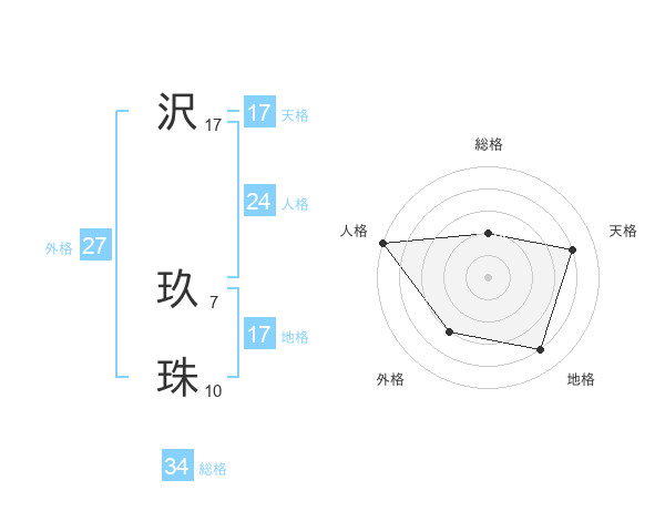 沢 玖珠さんの天格は17画の4点!