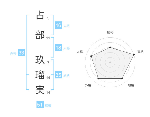 占部 玖瑠実さんを姓名の画数から五運を鑑定