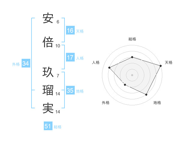 安倍 玖瑠実さんを姓名の画数から五運を鑑定