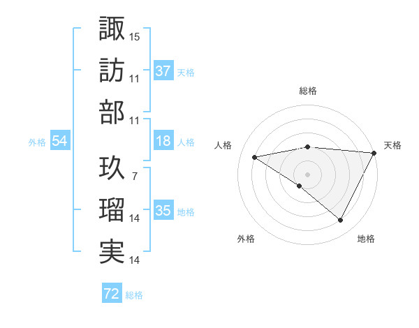 諏訪部 玖瑠実さんの天格は37画の5点!