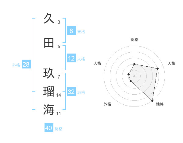 久田 玖瑠海さんを姓名の画数から五運を鑑定