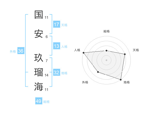 国安 玖瑠海さんの総格は49画の2点!