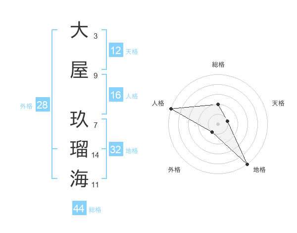 大屋 玖瑠海さんの総格は44画の2点!