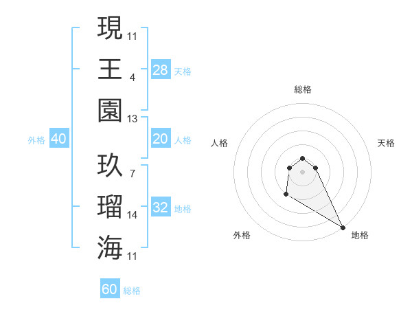 現王園 玖瑠海さんの地格は32画の5点!
