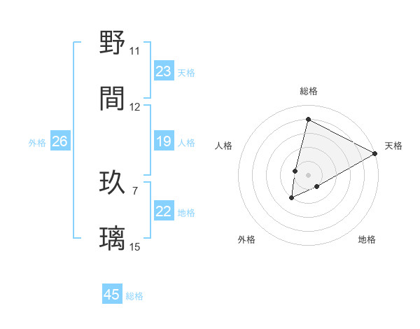 野間 玖璃さんの総格は45画の4点