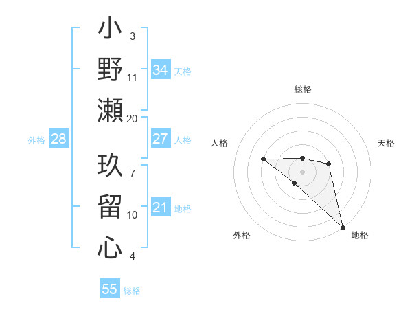小野瀬 玖留心さんを姓名の画数から五運を鑑定
