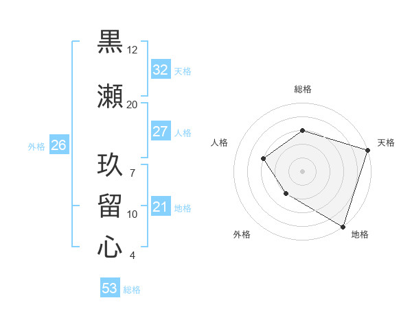 黒瀬 玖留心さんを姓名の画数から五運を鑑定