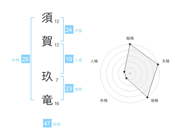 須賀 玖竜さんを姓名の画数から五運を鑑定