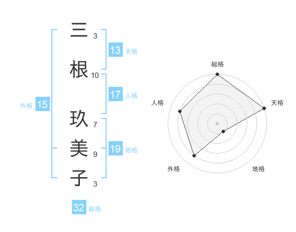 三根 玖美子さんを姓名の画数から五運を鑑定
