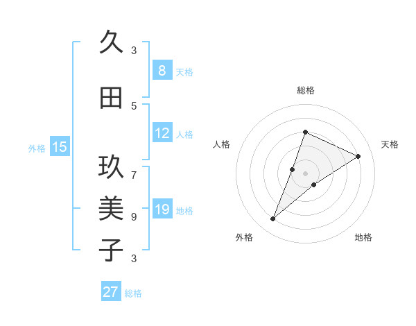 久田 玖美子さんを姓名の画数から五運を鑑定