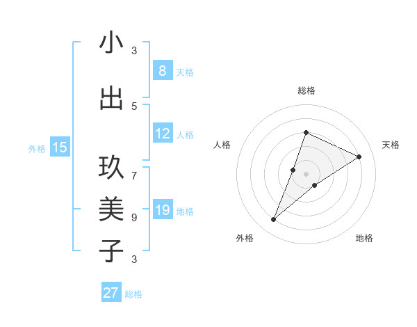 小出 玖美子さんを姓名の画数から五運を鑑定