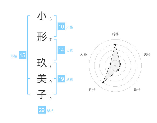 小形 玖美子さんの総格は29画の4点!
